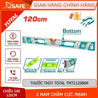 Thước thủy có từ TOTAL TMT212086M chiều dài 120cm, có 2 nam châm cực mạnh, thiết kế bề mặt phẳng đôi - chính hãng