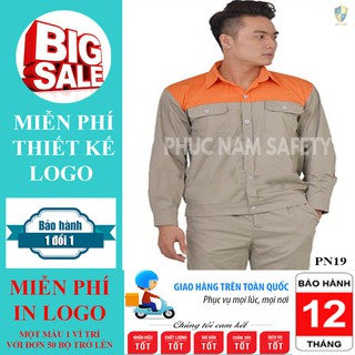 Bộ quần áo bảo hộ lao động PN19, quần áo bảo hộ lao động ghi xám phối cam, quần áo bảo hộ lao động, BHLĐ Phúc Nam