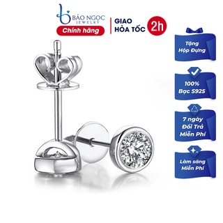 Bông Tai Bạc Nữ 925 Đính Đá Dáng Tròn Đeo Sát Tai B2425- Bảo Ngọc Jewelry