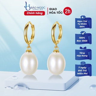 Bông tai ngọc trai tự nhiên Bạc ý s925,Ngọc trai thật nuôi nước ngọt thiết kế sang trọng dáng khuyên tròn B1933 Bảo Ngoc