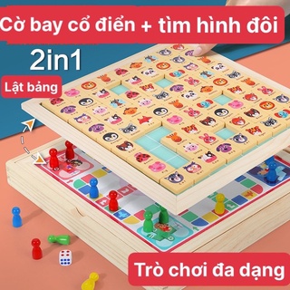 Bàn cờ bay + lật hình luyện trí nhớ 2 in 1, tìm cặp hình giống nhau