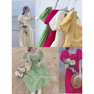 Váy đũi cổ vuông tay bồng có 4 màu siêu xinh