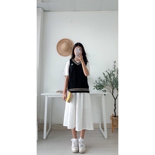Set quần giả váy cúc bọc kèm áo vest croptop tay dài