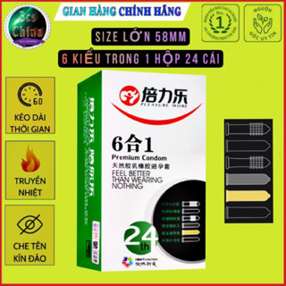 Bao cao su size lớn 58mm BEILILE 6 IN 1,siêu mỏng,gân gai,nhiều bôi trơn,kéo dài thời gian [ hộp 24 cái ]