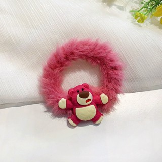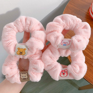 Scrunchies Buộc TócVải Nhung Gấu Lotso Hồng, Phối Lông Hình Thú Dễ Thương