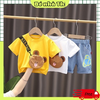 Bộ đồ bé trai 2 chi tiết áo thun hình gấu quần bò BN04 - BÉ NHÀ THỊ