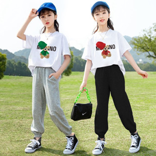 Quần áo bé gái 17-45kg, set bộ quần áo hè bé gái 5-14 tuổi mẫu chữ M cá tính năng động, chất vải mềm mát
