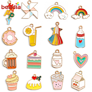 BEADIA Bộ 4 Mặt Trang Sức Vòng Tay/ Khuyên Tai/ Khuyên Tai Bằng Hợp Kim Tráng Men Màu Sắc Cầu Vồng DIY