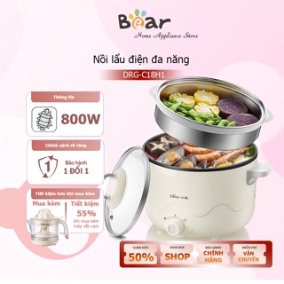 Nồi lẩu điện Bear DRG-C18H1 KÈM XỬNG HẤP dung tích 2.5L, Nồi điện đa năng chế biến nấu lẩu, chiên xào hấp thức ăn