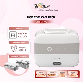 Hộp cơm cắm điện, giữ nhiệt hâm nóng Bear DFH-B17K2 dung tích 1.5L, 3 khay INOX 304, tiện lợi dành cho dân văn phòng