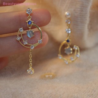 1 Cặp Bông Tai Hình Mặt Trăng Đính Pha Lê Xanh Dương Thời Trang Dành Cho Nữ