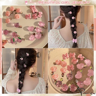 Kẹp Tóc Hình Nơ / Bông Hoa Màu Hồng Xinh Xắn Thời Trang Phong Cách Hàn Quốc Cho Nữ