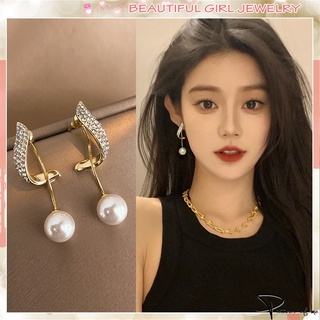 Bông tai mạ bạc 925 đính đá ngọc trai thời trang Hàn Quốc cho nữ
