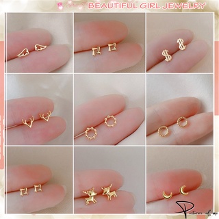 Đôi khuyên tai mạ vàng bạc 925 mini cỡ 3/4/5mm thời trang cá tính cho nữ