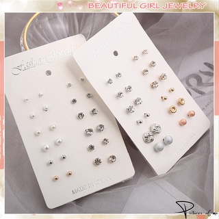 Set 12 Đôi Khuyên Tai Hình Hoa Đính Đá / Ngọc Trai Giả Thời Trang Cho Nữ