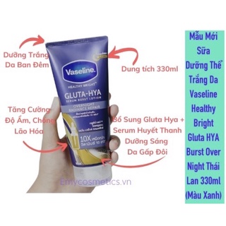 NEW - Sữa Dưỡng Thể Trắng Da Vaseline 10X xanh Healthy Bright Gluta HYA Burst Lotion Over Night Radiant Repair 330ml