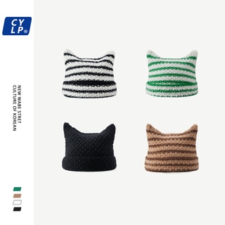 Mũ Len Kẻ Sọc Đính Tai Mèo Dễ Thương Thời Trang Thu Đông Cho Nữ