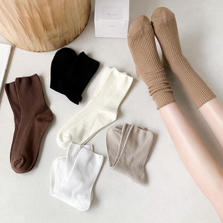 Vớ cổ cao sọc gân BeautyBigBang màu trơn bằng cotton co giãn phong cách Ulzzang Hàn Quốc thích hợp cho nam nữ