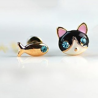 Hoa tai mặt hình cá và mèo phong cách Hàn Quốc đáng yêu