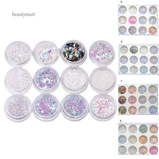 Bộ 12 hộp kim tuyến 12 mẫu trang trí móng tay