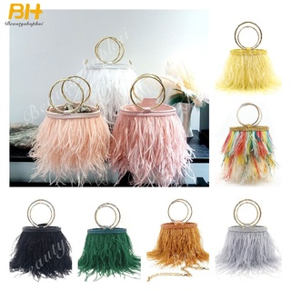 Túi Xách Lông Đà Điểu Phối Dây Xích Đeo Vai Thời Trang Cho Nữ