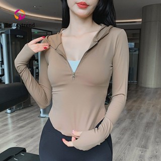 BEAUTYTREND Áo Khoác Hoodie Thể Thao Tay Dài Phối Khóa Kéo Nửa Thân Cá Tính