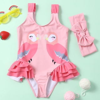 Bộ Đồ Bơi Một Mảnh Không Tay In Hình Chim Hồng Hạc Dễ Thương Dành Cho Bé Gái 2-8 Tuổi