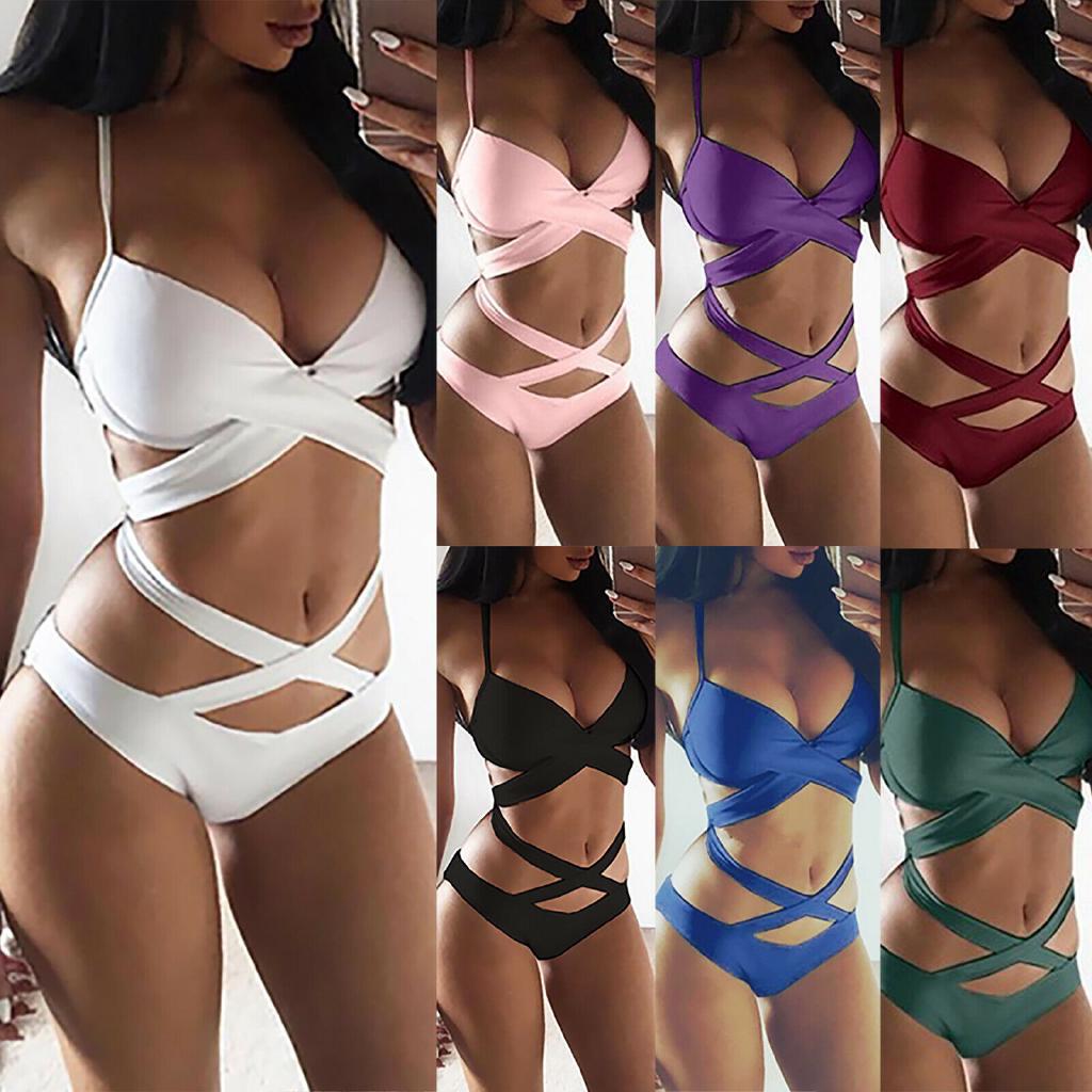 Bộ bikini thời trang biển màu trơn thiết kế quyến rũ cá tính cho nữ