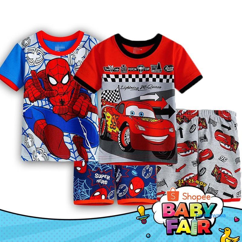 Bộ đồ ngủ áo thun tay ngắn và quần đùi in họa tiết siêu anh hùng dành cho bé trai