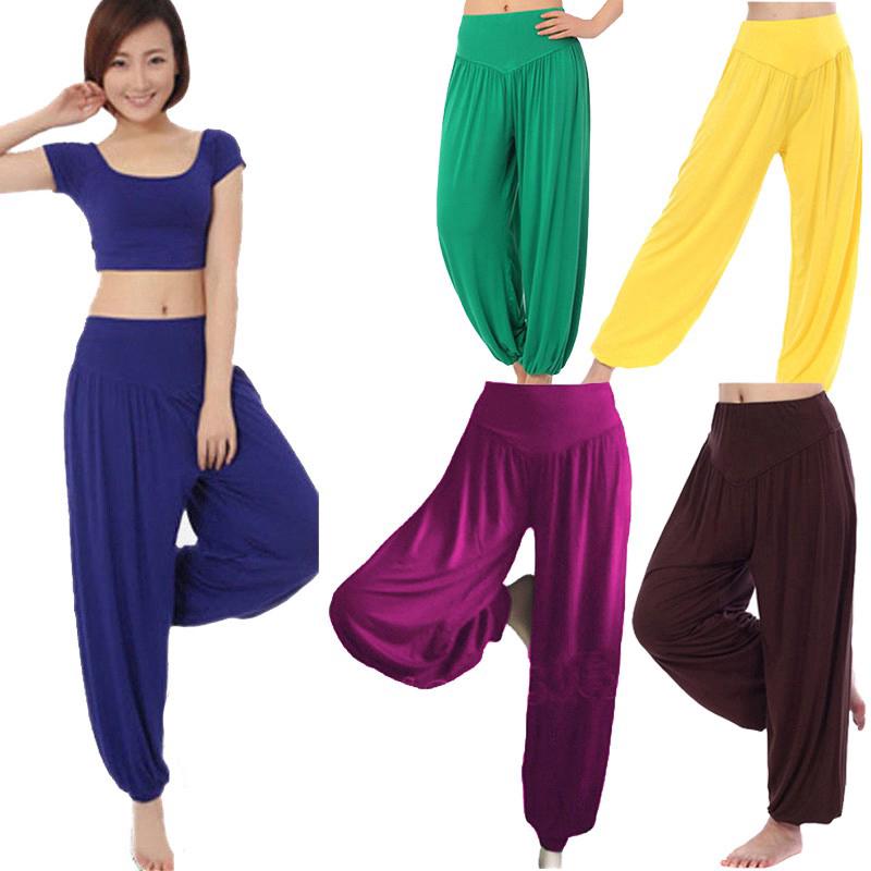 Quần yoga nữ ống rộng thoải mái màu trơn phong cách Boho