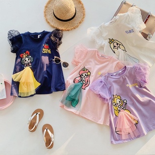 Đầm Công Chúa Tay Ngắn Phối Ren Lưới Màu Gradient Dễ Thương Cho Bé Gái