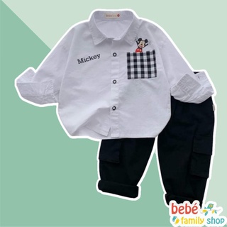 Set bộ sơ mi trắng bé trai quần kaki túi hộp Bộ quần áo thời trang bé trai Hàn Quốc - STB