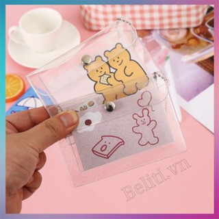 Ví mini trong suốt PVC nhỏ xinh nút bấm đựng thẻ/tiền xu/tai nghe thời trang phong cách Hàn Quốc