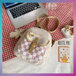 Balo đi học sọc caro đầy đủ phụ kiện - Balo ulzzang chống nước B12