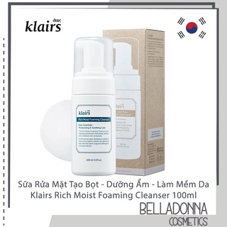 [CHÍNH HÃNG] Sữa Rửa Mặt Tạo Bọt, Dưỡng Ẩm, Làm Mềm Da Klairs Rich Moist Foaming Cleanser 100ml