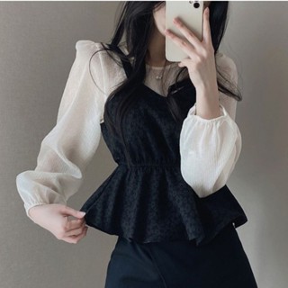 Áo Thun Dài Tay Giả Hai Lớp Cổ Tròn Phong Cách Hàn Quốc Cho Nữ