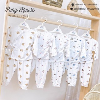 Bộ Quần Áo Sơ Sinh Dài Tay Cúc Lệch Quần Đáp Đũng Thun Lạnh Cho Bé Trai Bé gái(VT-QAD01)