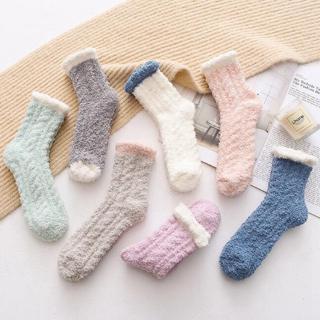 Tất lông cừu san hô đính lông xù giữ ấm mùa đông dành cho bạn gái