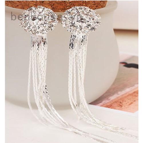 Khuyên tai dáng dài đính đá pha lê tua rua