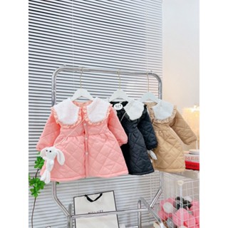 áo khoác cổ lông kèm dây đeo thỏ xinh xắn, áo khoác bé gái 10-23kg