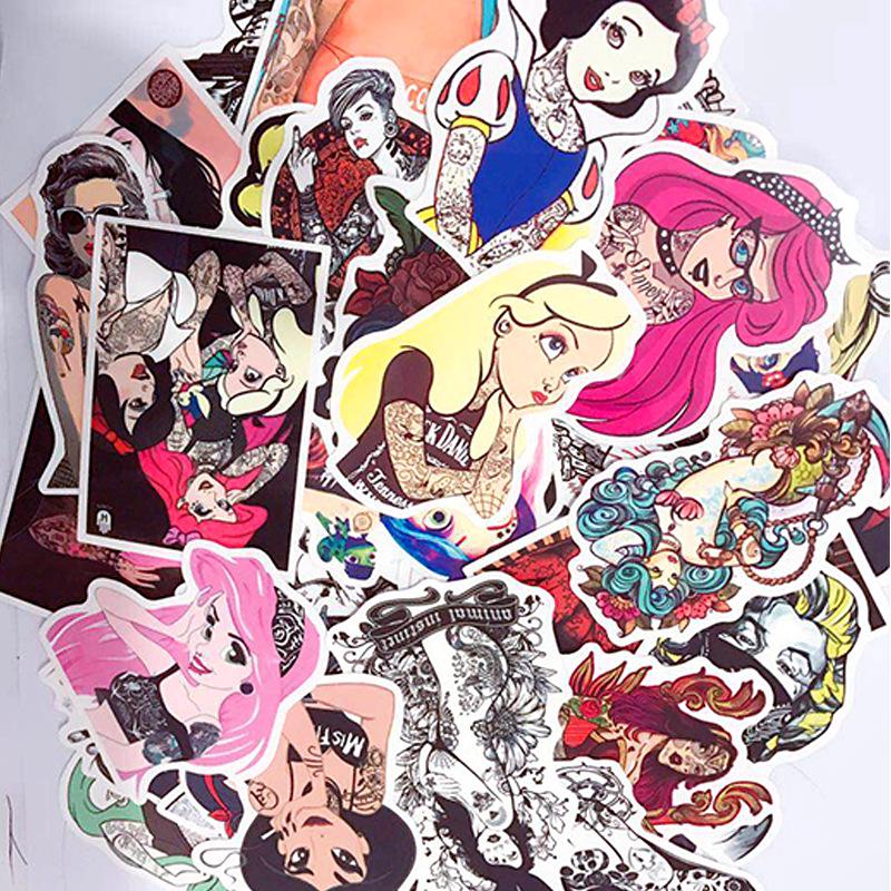 Bộ 50 miếng sticker hình cô gái có hình xăm đẹp trang trí xe hơi/máy tính xách tay văn phòng/cốp xe/đàn guitar