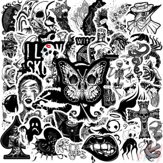 ❉ Sticker Dán Trang Trí Họa Tiết Trắng Đen Phong Cách Gothic Punk 04 ❉ Bộ 50 Sticker Chống Thấm Nước Họa Tiết Doodle Hợp Thời Trang
