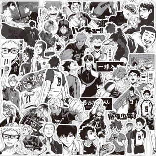 ❉ Haikyuu!!. Miếng Dán Trang Trí Màu Trắng Đen Phong Cách Cổ Điển ❉ Bộ 65 Miếng Dán Chống Thấm Nước Họa Tiết Doodle Thời Trang