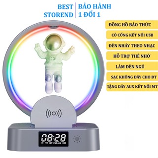 Loa bluetooth 5.1 đồng hồ phi hành gia M20 đèn led RGP nhấp nháy theo nhạc làm đèn ngủ báo thức decor nghe đài FM