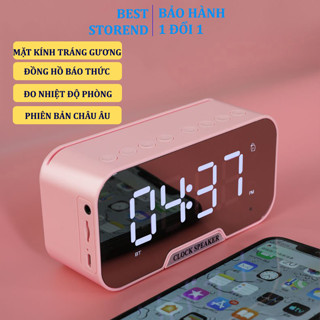 Loa bluetooth không dây mini clock speaker D88 làm đồng hồ báo thức kèm đèn ngủ pin trâu mặt kính tráng gương