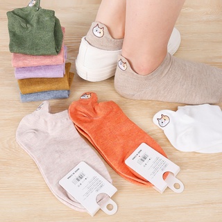 1 Đôi Vớ Cotton Cổ Thấp Mềm Mại Thêu Hình Mèo Hoạt Hình Thoáng Khí Khử Mùi Thời Trang Xuân Hè Dành Cho Bạn Nữ