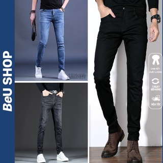 Quần jean nam BeUshop vải denim co giãn 4 chiều, Jean đen trơn form skinny không phai xù cao cấp big size từ 28-36