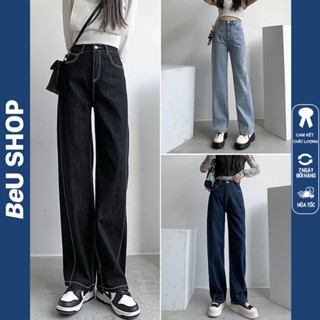 Quần Jeans Nữ Ống Xuông Cạp Cao Chỉ Nổi BeU Quần Ống Rộng Chì Màu Hottrend Dễ Phối Đồ Siêu Hack Dáng BeU Shop