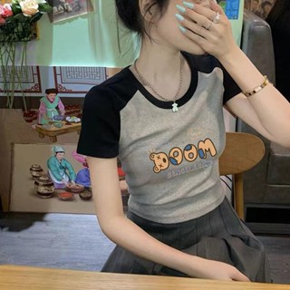 Áo Thun Raglan Tay Ngắn Dáng Ôm Màu Sắc Tương Phản Thời Trang Mùa Hè Cho Nữ