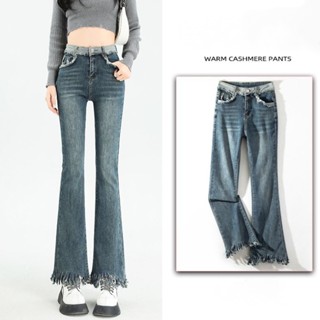 Quần denim ống rộng có viền thô nữ xuân thu 2023 mới cao cấp giảm béo cỡ lớn quần ống rộng ống rộng quần áo mùa xuân